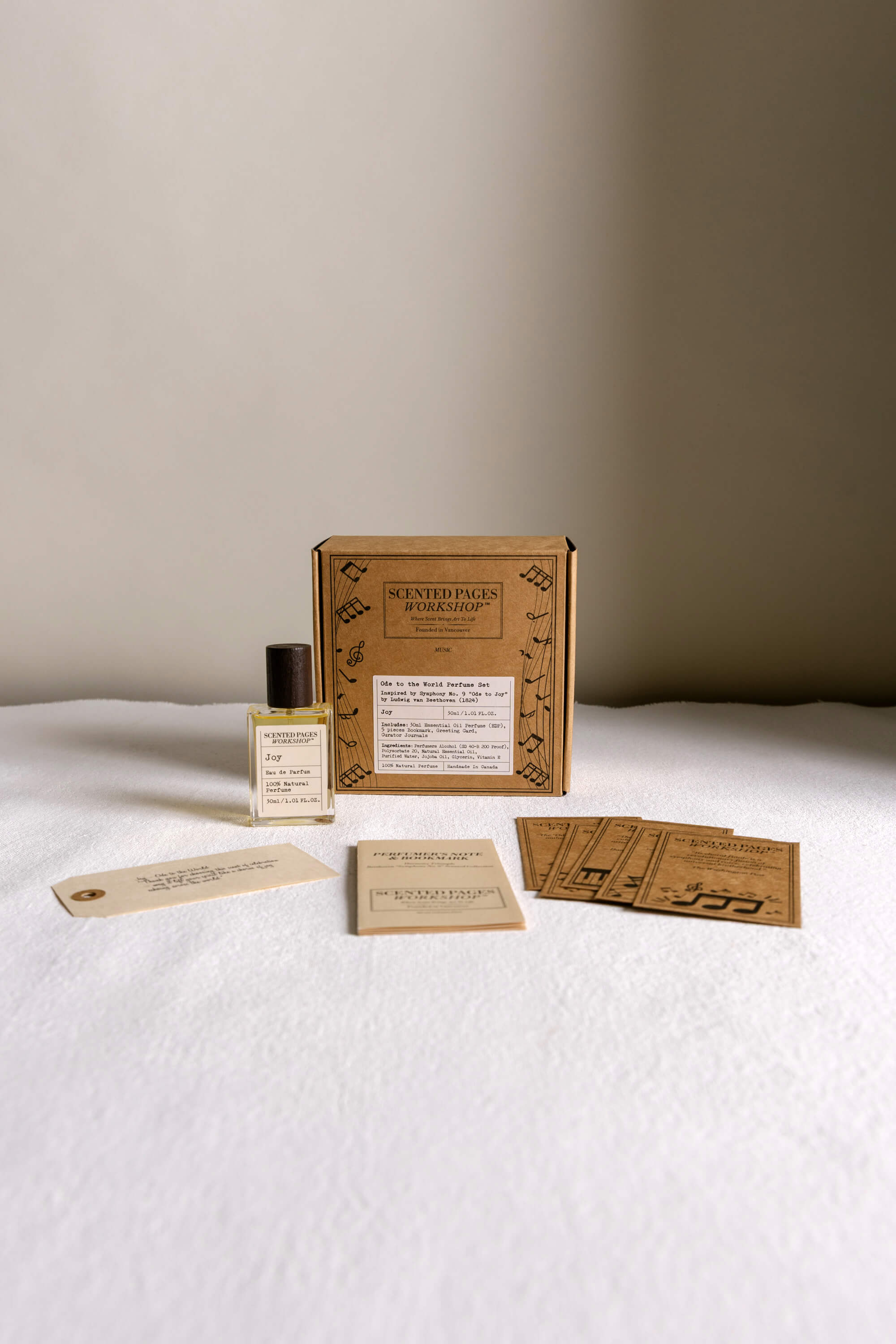 Sun-bright neroli and pink grapefruit burst into song, lifted by sweet orange and bergamot. A floral chorus of rose, white champa, cardamom, and sweet marjoram swells like voices joined in harmony, before resting on a reverent base of cypress, guaiacwood, frankincense, sandalwood, and a final whisper of myrrh. The fragrance rises and resolves just as the symphony does—exultant, embracing, unifying.