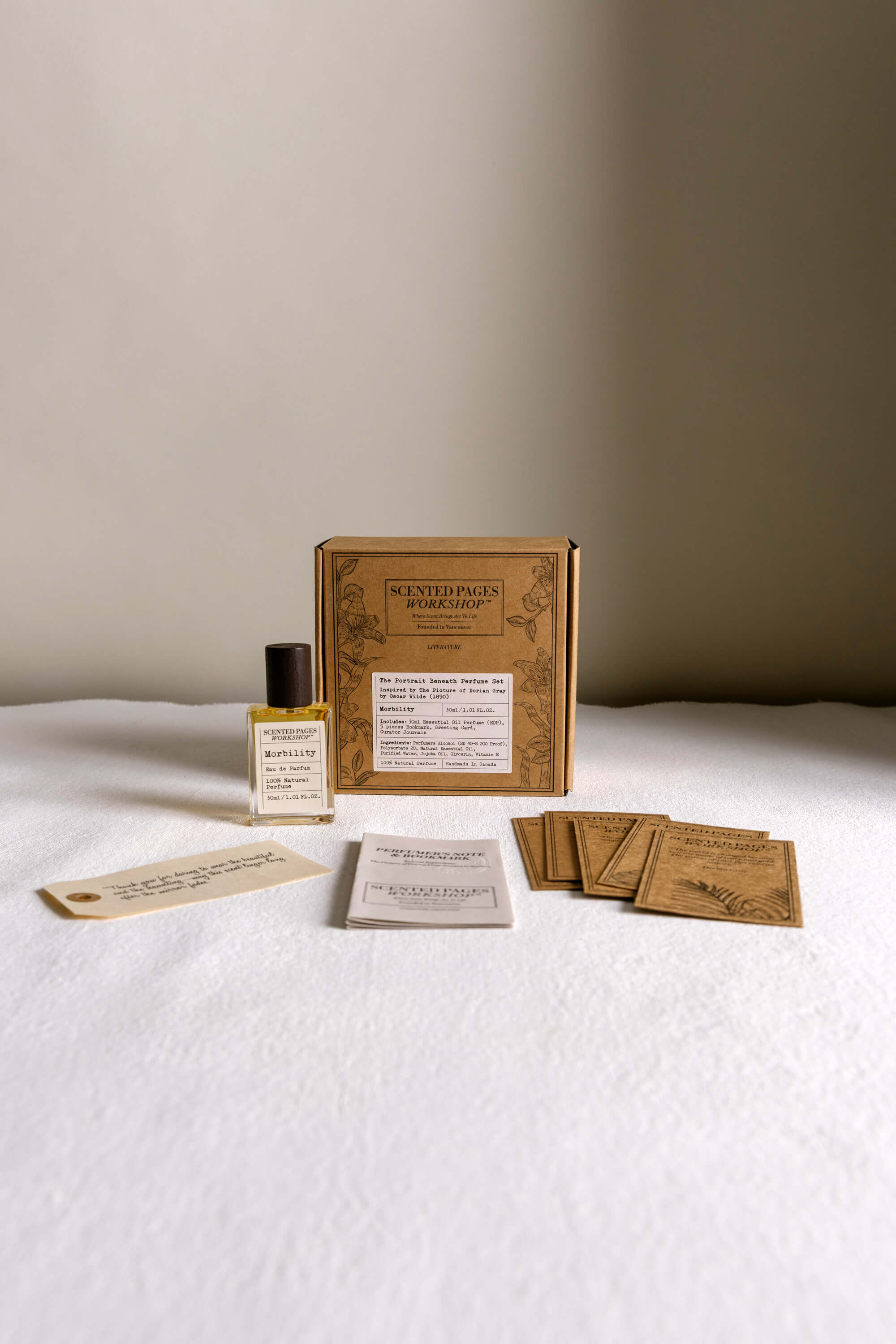Litsea and grapefruit glint like forbidden curiosity; petitgrain and neroli suggest a façade of innocence. Beneath, rose-geranium, ylang-ylang, rosemary, lavender, chamomile, and smoky cistus weave an intoxicating spell—luxurious and unsettling. Sandalwood, patchouli, benzoin, and vetiver linger, dark as a portrait hidden in the attic.