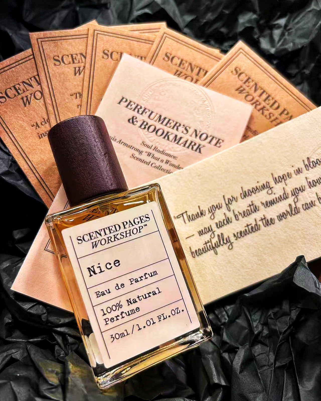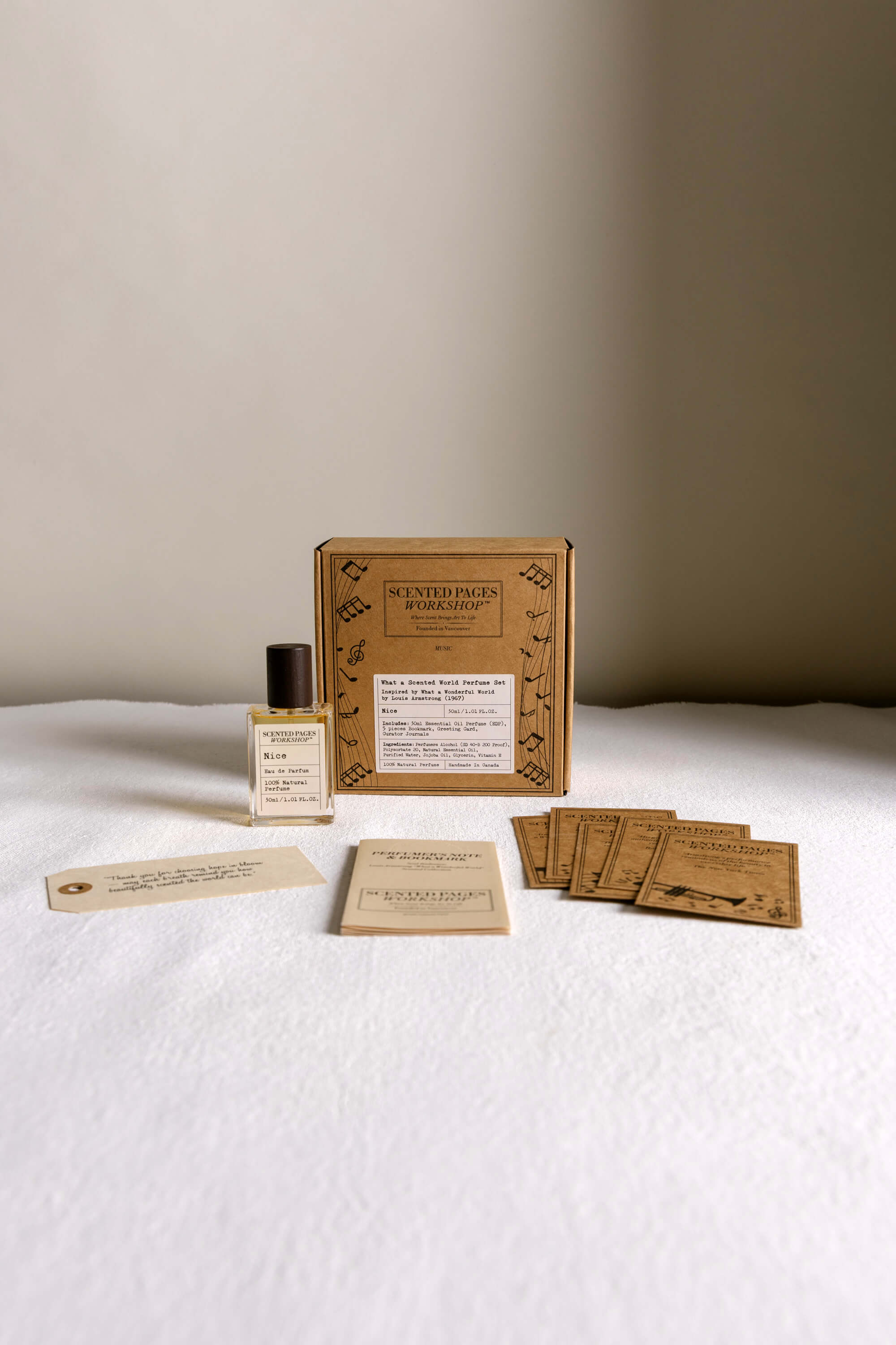 Citrus sunlight—sweet orange, lemon, pink grapefruit, petitgrain—opens onto the easy swing of lemongrass, lavender, white champa, jasmine, and a hint of bergamot. The melody settles into warm woods and earth: frankincense, sandalwood, patchouli, cedar, smoothed by a touch of vanilla. Optimism you can smell and hum along to.
