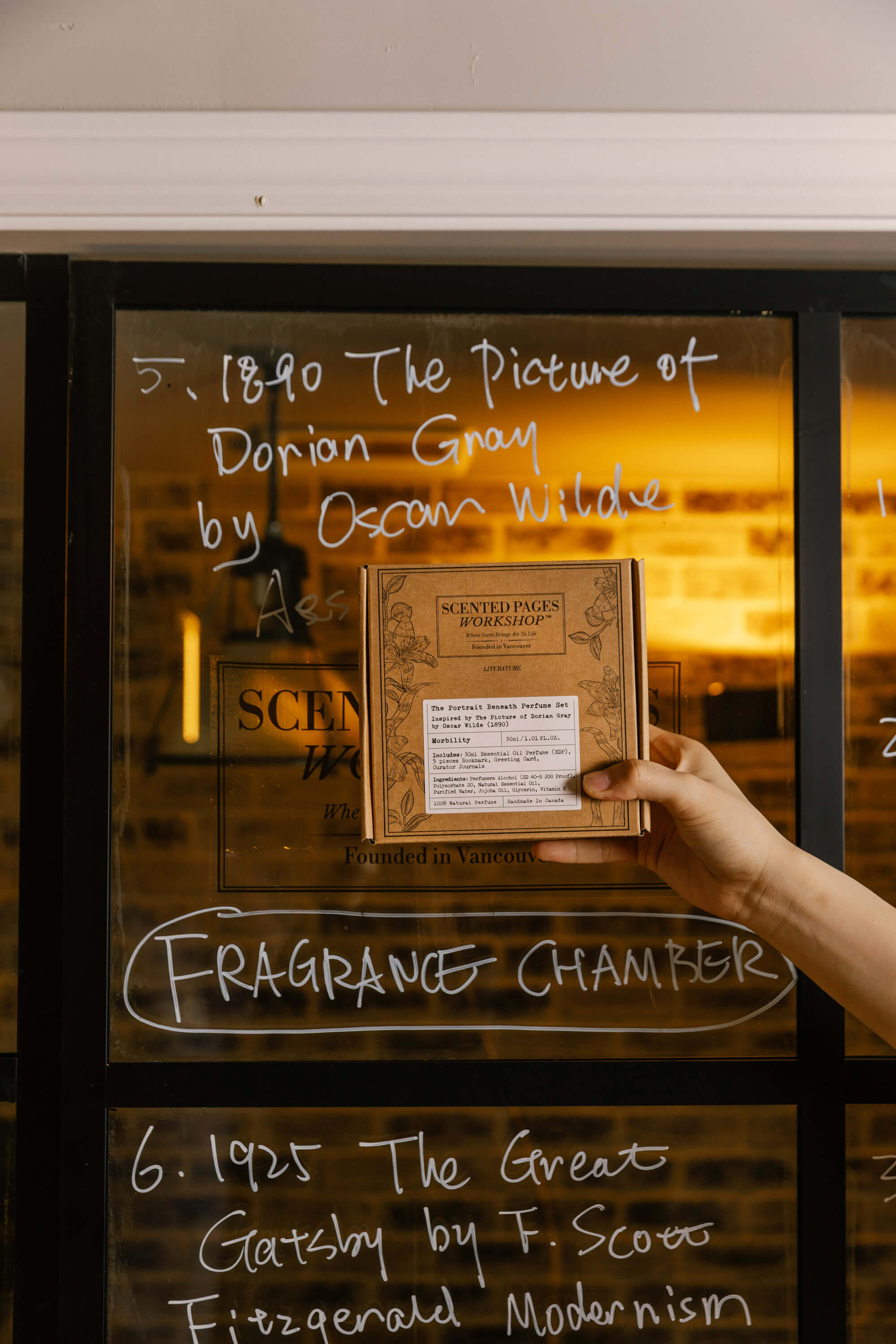 Litsea and grapefruit glint like forbidden curiosity; petitgrain and neroli suggest a façade of innocence. Beneath, rose-geranium, ylang-ylang, rosemary, lavender, chamomile, and smoky cistus weave an intoxicating spell—luxurious and unsettling. Sandalwood, patchouli, benzoin, and vetiver linger, dark as a portrait hidden in the attic.