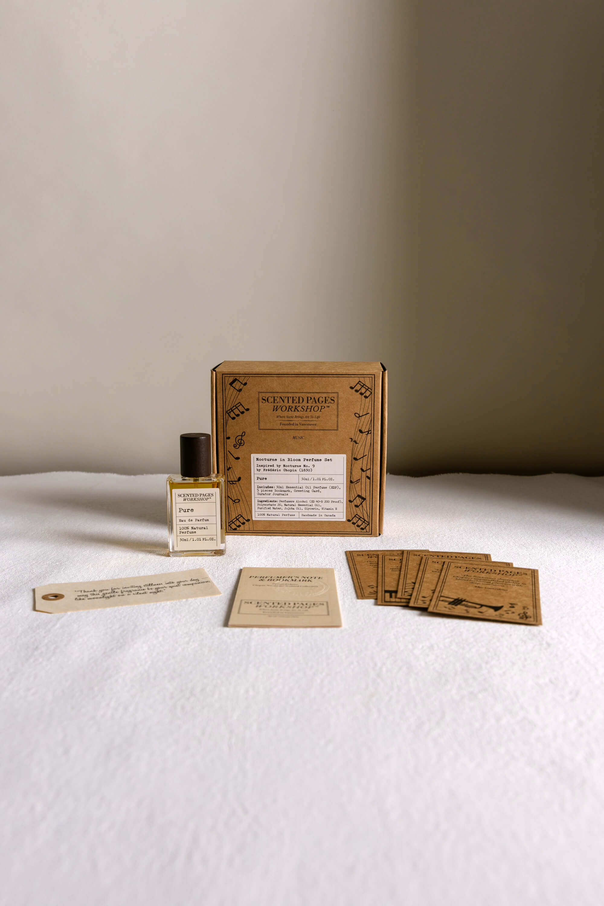 Moonlit citrus—sweet orange, neroli, bergamot, and a breath of grapefruit—glimmers above a still, blue heart of lotus, jasmine, lavender, lemongrass, and rose. Beneath, cypress and copaiba mingle with oakmoss, sandalwood, and vetiver, giving the composition the quiet depth of a midnight chord held until silence.